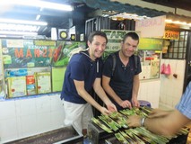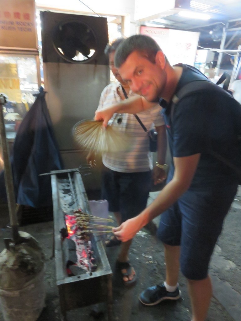 Après avoir dormi pendant environ 2h30, on se lève pour se préparer pour la soirée. Pour notre 1ère soirée, j'ai réservé un "food tour". Nous rejoignons le point de départ de cette visite culinaire, une station de métro assez loin du centre. L'experience du metro est en soi toute une aventure : il nous faut récupérer une sorte de jeton de casino, qui ne nous autoriserait à sortir qu'à la station d'arrivée prévue. De plus, nous sommes en plein Rush-Hour. Peu experimenté nous laissons filer le premier metro qui nous est proposé pensant que le suivant sera moins bondé... Peine perdue, il est tout aussi prit d'assaut : nous tentons donc une percée pour pouvoir quand même arriver à destination. Nous sommes supposés y retrouver notre guide Farah à 19h, mais comme prévu, c'est plutôt elle qui nous retrouve (bizarrement on est facilement identifiables dans la foule de locaux). Se joignent également à la visite 2 irlandaises, une anglaise et 4 australiens. Après les présentations, on se met en route dans un van qui va nous conduire à 3 endroits différents au cours de la soirée. L'objectif de Farah est de nous faire découvrir la cuisine des 3 ethnies principales de la Malaisie : malais, chinois et indiens. Je ne vais pas décrire tout ce qu'on a goûté, vous pouvez voir ça en photos ci-dessous, mais on n'a pas arrêté de manger pendant 4 heures enchainant les plats salés, sucrés, épicés. Globalement tout ou presque nous a plu mais c'est surtout l'ambiance de chaque endroit que nous avons apprécié. Loin du centre ville et des lieux touristiques, Farah nous a amené dans des endroits fréquentés uniquement par les locaux et elle nous a permis de découvrir les règles de base de la vie malaisienne. Chaque vendeur ou cuisinier participait en nous montrant ce qu'il faisait et tous ont été très accueillants et nous avons passé un excellent moment en compagnie de Farah et des autres personnes de notre groupe. Après cette soirée riche en expériences, retour à l'hôtel à minuit.