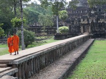 Nous parcourons ainsi de nombreux kilomètres au départ de Siem Reap. Les chauffeurs nous déposent au pied de nombreux temples à commencer par Pre Rup, un temple carré aux dimensions déjà imposantes, qui se laisse découvrir doucement, pour nous remettre dans l’ambiance. Puis nous enchainons sur Preak Nean, un plan d’eau au milieu d’autres plans d’eau, accessible seulement par une interminable passerelle au-dessus d’un lac. Enfin Preah Khan que nous découvrons tout en longueur. Cela fait un peu énumération, mais chaque endroit à son atmosphère propre, assez calme, souvent un peu mystérieuse. On imagine très bien les explorateurs et archéologues découvrant encore quelques constructions surprenantes, des pièces et statues uniques ou des salles oubliées depuis des siècles. Du coup Emeric, Claire, Maud et Benjamin, chacun trouvons matières à photographier quelques angles qui nous inspirent.