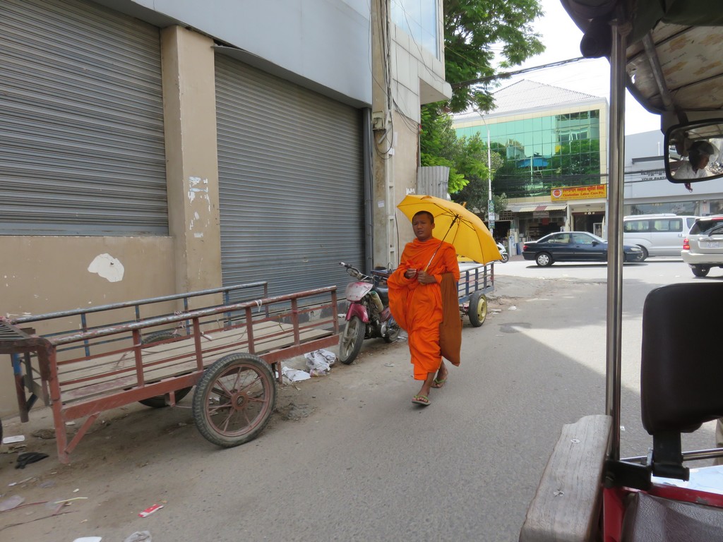 Au cours de la matinée, nous sommes allés visiter un temple bouddhiste qui ne nous a pas vraiment impressionné, puis nous avons déambulé dans les rues en évitant de se prendre un 4x4, une mobylette ou un tuk-tuk, jusqu’au Central Market. Ici on trouve des vêtements, des bijoux et bien sûr de la nourriture, qui ne nous donne généralement pas envie. Entre les carcasses de viandes exposées sous 30°c et envahies de mouches, les poissons à peu près aussi bien présentés et les stands de nourriture à emporter dont les odeurs envahissent les allées, il faut avoir l’estomac bien accroché.
