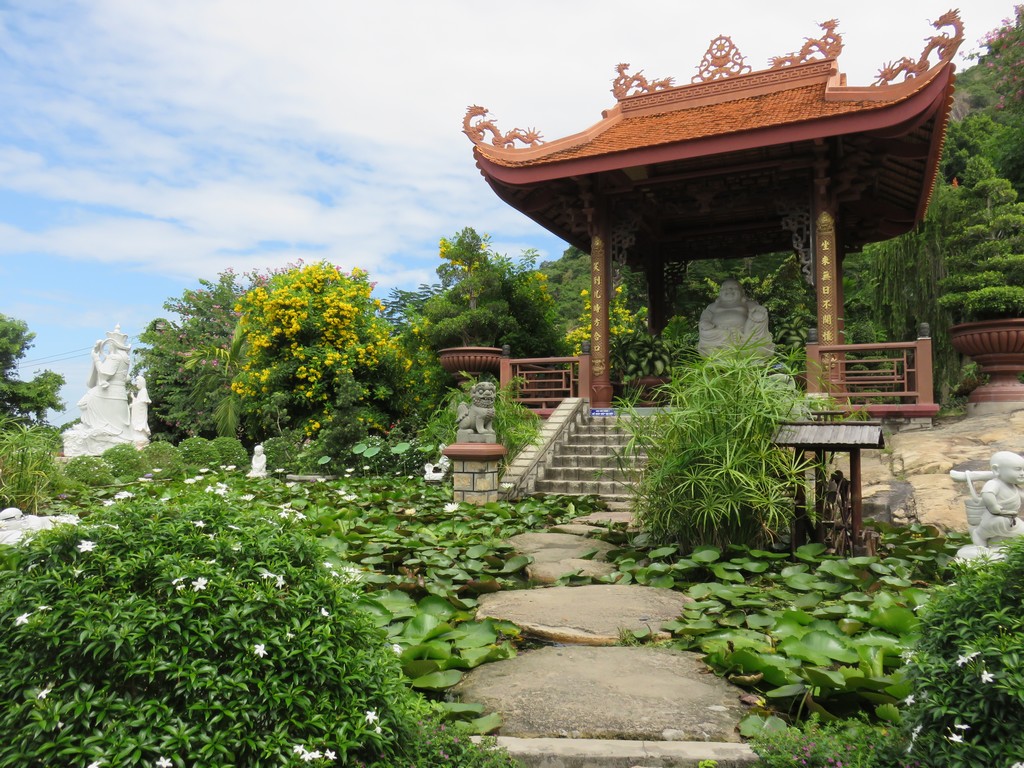 Après cette parenthèse magique, nous remontons sur les motos direction la montagne Sam. En chemin nous faisons juste un arrêt pour voir une échoppe d’artisanat de soie khmer. Une femme est en train de réaliser une écharpe en soie de manière archaïque, elle mettra 2 semaines pour faire son écharpe. Au bout de 30 minutes, nous arrivons à la montagne, d’environ 200 mètres de haut (ça ne semble pas beaucoup mais dans une région aussi plate que le Delta du Mékong, ça fait tout de suite assez haut). De nombreux temples se trouvent sur cette montagne, nous en avons visité un bouddhiste dont la particularité est que toute une partie du temple se trouve dans la montagne sous forme de cavernes. Par cette chaleur, nous prenons un grand plaisir à suivre San dans les différents couloirs souterrains. On pensait avoir tout vu des temples mais celui-ci nous a surpris et bien plu.