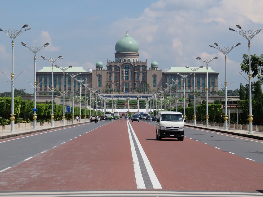 Après le petit-déjeuner nous descendons à l’accueil pour y attendre la voiture de location. En effet, c’est la première fois que je vois ça, la voiture de location nous est amenée directement devant notre hôtel. Il n’y a plus qu’à signer les papiers et partir avec. Les premières minutes sont un peu hésitantes, entre la conduite à gauche (merci les anglais), le gps qui a un peu de mal à nous afficher correctement la voiture centrée sur la route et les autoroutes de Kuala Lumpur qui partent dans tous les sens. Nous arrivons finalement à quitter la capitale après avoir raté quelques sorties et traversé un péage en transversale. La conduite ici est sportive et il faut sans arrêt changer de voie et éviter les voitures et mobylettes qui passent et s’arrêtent de tous les côtés. Je m’y fais finalement très vite alors que nous arrivons à Putrajaya au bout de 30 minutes. Il s’agit de la capitale administrative du pays dans laquelle nous ne faisons que passer. Elle est très récente et il y a des constructions énormes de chaque côté d’un très large boulevard.